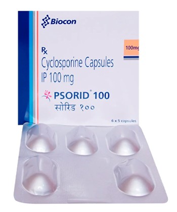 - Ciclosporin wird zur Behandlung von Organtransplantationen, rheumatoider Arthritis und Psoriasis eingesetzt. Das Medikament wirkt als immunmodulatorischer Calcinurininhibitor.