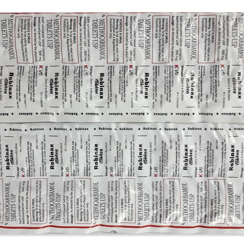 Die Verpackungen variieren je nach Region. Robaxin wird beispielsweise in den USA und Europa in 500 mg und 750 mg Tablettenformaten verkauft, während in Brasilien die Marke Skelex verwendet wird. In einigen Märkten, wie Kanada, ist Robax Platinum erhältlich, häufig als Kombination mit Paracetamol.